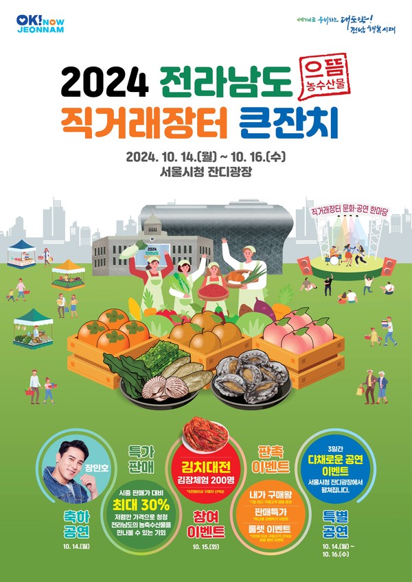 전라남도는 지역 우수 농수특산물의 수도권 홍보와 판로 확대를 위해 오는 14일부터 3일간 서울시청 잔디광장에서 대규모 직거래장터 큰잔치를 개최한다.