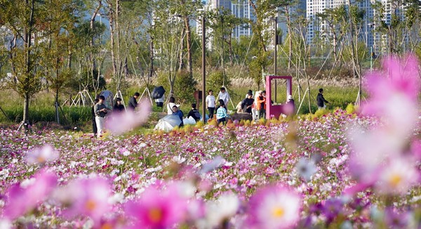 지난 9일 축제 개막에 맞춰 개방한 들섬 꽃단지에는 첫날부터 가을 정취를 만끽하는 관광객들로 인산인해를 이뤘다. 꽃길 곳곳에 설치된 포토존엔 가을 인생 사진을 찍는 사람들이 줄을 이었다.