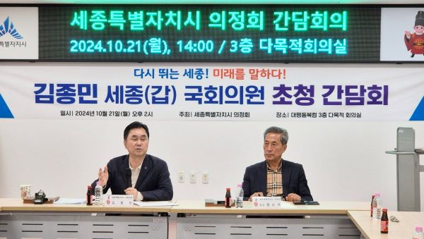 이의 일환으로 21일 김종민 국회의원(세종시갑)을 초청해 세종시 대평동 행정복지센터에서 간담회를 가졌다.