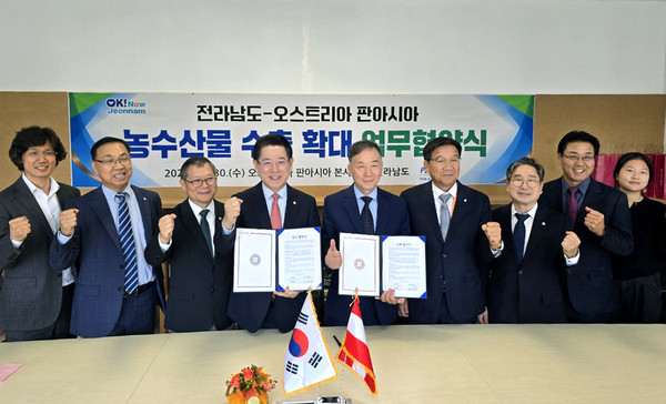 오스트리아를 방문 중인 김영록 지사는 30일(현지시간) 판아시아(PanAsia․회장 정종완) 본사에서 전남 농수산식품 수출 확대 업무협약을 했다.
