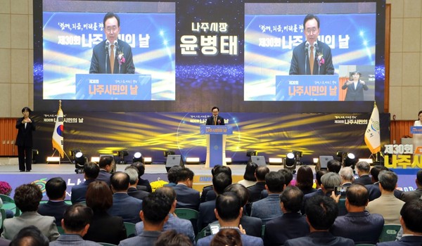 전라남도 나주시(시장 윤병태)는 30일 오후 2시 나주종합스포츠파크 다목적체육관서 ‘제30회 나주시민의 날’ 기념식을 개최했다.