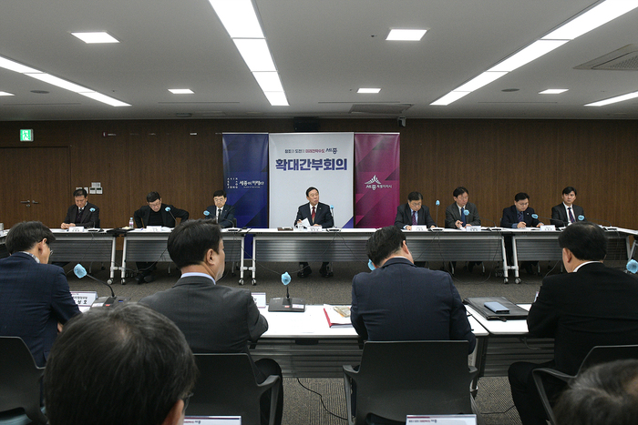 최민호 시장은 5일 시청 대회의실에서 열린 3월 확대 간부회의에서 올해는 모든 공무원이 보다 넓은 시각에서 정책 간 연계 방안에 대해 고심해야 달라고 주문했다.