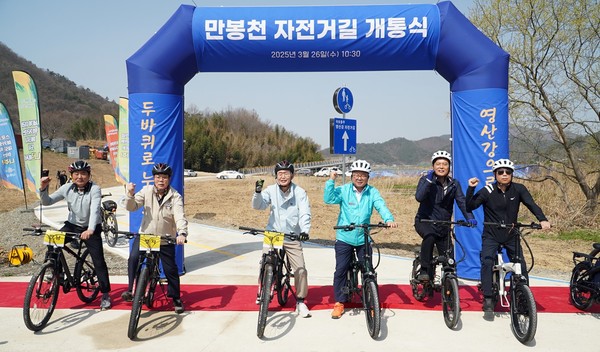 전라남도 나주시(시장 윤병태)는 국토 종주 영산강 자전거길 중 만봉천 ~ 앙암바위 취약 구간 개선공사가 완료됨에 따라 26일 영산강유역환경청에서 ‘만봉천 자전거길 개통식’을 개최했다고 밝혔다.