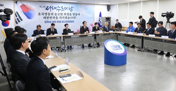더불어민주당은 28일 오전 대전시당 회의실에서 현장 최고위원회를 열어 서해수호의날을 맞아 순직 용사들을 추모했다.