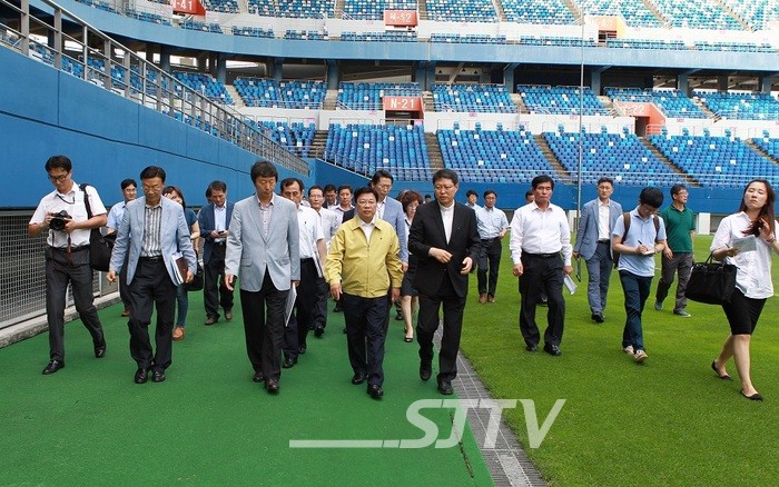 권선택 대전시장은 18일 오후, 오는 8월 15일 프란치스코 교황의 미사가 집전되는 월드컵 경기장을 찾아 준비상황 보고와 현장점검을 실시했다.
