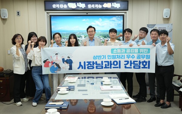 나주시는 18일 소회의실에서 ‘2025년 상반기 민원 처리 우수 직원 간담회’를 개최하고 현장에서 애써온 직원들과 민원 행정의 성과와 과제를 공유했다고 밝혔다.