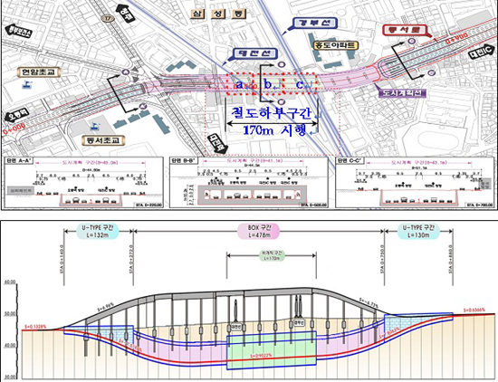 31일 동구청에 따르면 철도시설공단에서 지난 2월 철도 통과 직하부 170m 구간에 대한 실시설계 용역을 착수, 지난 7월 기술심의위원회를 통과했으며 실시 설계안이 확정되는데로 8월 중 ‘비개착 공법’으로 공사를 시작한다.