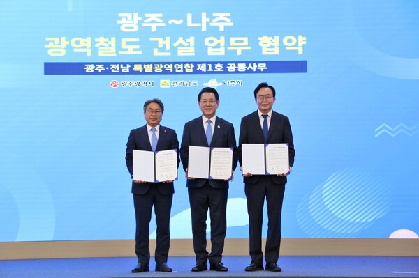 나주시는 27일 광주광역시, 전라남도와 함께 ‘광주·전남 특별지방자치단체’ 출범을 선포하고 제1호 공통사무로 ‘광주~나주 광역철도 건설’을 확정했다고 밝혔다.
