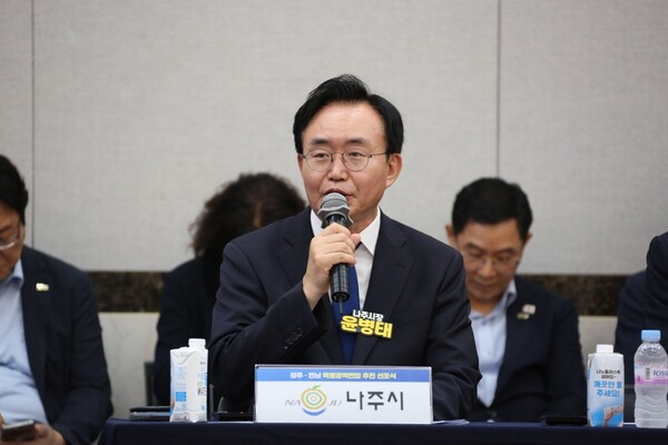 윤병태 나주시장은 “나주에서 출범하는 특별광역연합은 미래를 향한 광주와 전남의 발전을 도모하는 제도적 기반이 될 것”이라며 “나주가 대한민국 새로운 성장축으로 자리매김하고 특별광역연합과 함께 호흡하면서 국가균형발전을 든든히 뒷받침하겠다”고 밝혔다.