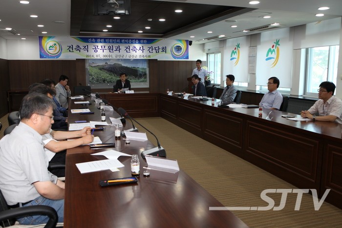 이번 간담회에는 김시형 부군수와 김석곤 지회장 및 관내건축사와 건축직 공무원 17명이 참석한 가운데 2014년도 건축행정시책에 대한 추진현황설명과 함께 달라지는 사용승인 업무처리 운영방안, 그리고 군민체감 신뢰도 향상과 대민건축행서비스 개선방안 등 다양한 문제를 협의했다.