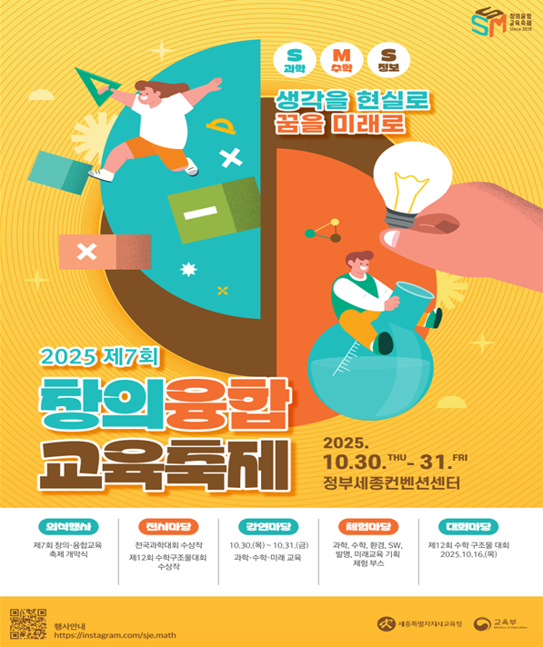 정종필 학교정책과장은 “앞으로도 수학, 과학, 정보 등 미래 사회를 이끌어갈 핵심 교육 분야에 집중하여, 학생들이 창의적 사고력과 융합적 문제해결 능력을 갖춘 미래형 인재로 성장할 수 있도록 다각적인 지원을 아끼지 않을 것.”이라고 밝혔다.