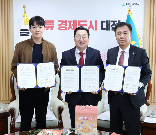 【SJB세종TV=박해연 기자】 대전시는 28일 대전관광공사, 티엔알컴퍼니(주)와 함께 꿈돌이 누룽지 출시를 위한 공동브랜딩 업무협약을 체결했다.