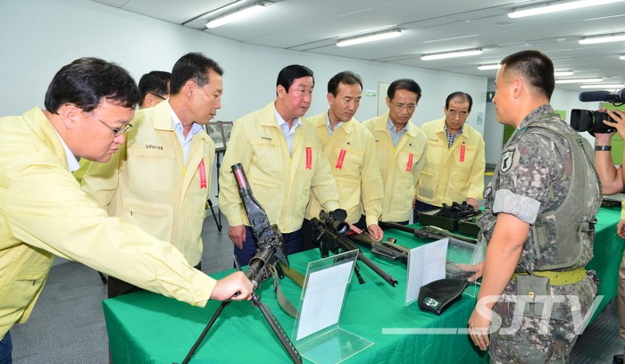 김기영 충남도의회 의장 및 부의장, 상임위원장 일행은 18일 2014. 을지연습 통합방위지원본부를 방문해 추진상황을 청취한 후 근무자들을 격려했다.(좌로부터 유익환 부의장, 김기영 의장, 김홍열 농업경제환경위원장, 조길행 운영위원장, 백낙구 행정자치위원장)