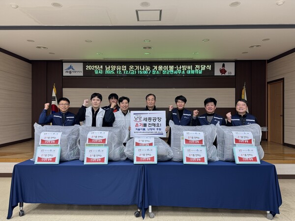 【SJB세종TV=경수진 기자】 남양유업 세종공장이 12일, 장군면지역사회보장협의체에 지역민을 위한 난방비 220만 원과 독거노인을 위한 80만 원 상당의 겨울 이불을 전달했다.