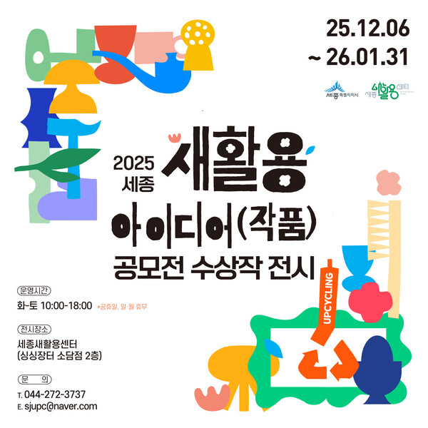 【SJB세종TV=경수진 기자】 세종시가 세종새활용센터에서 ‘2025년 새활용 아이디어(작품) 공모전’ 수상작 전시를 연다고 15일 밝혔다.