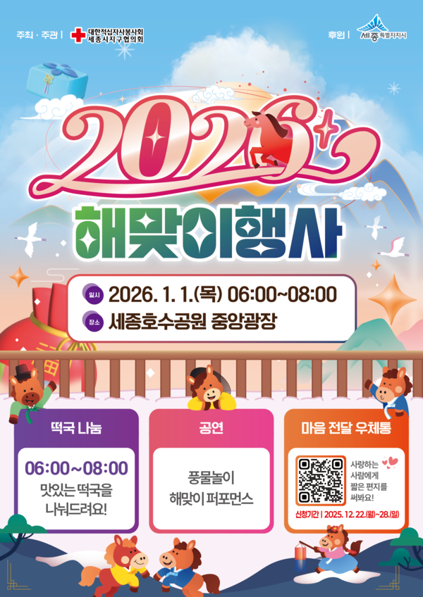 【SJB세종TV=경수진 기자】 2026년 1월 1일 세종호수공원에서 병오년(丙午年) 해맞이 행사가 열린다.