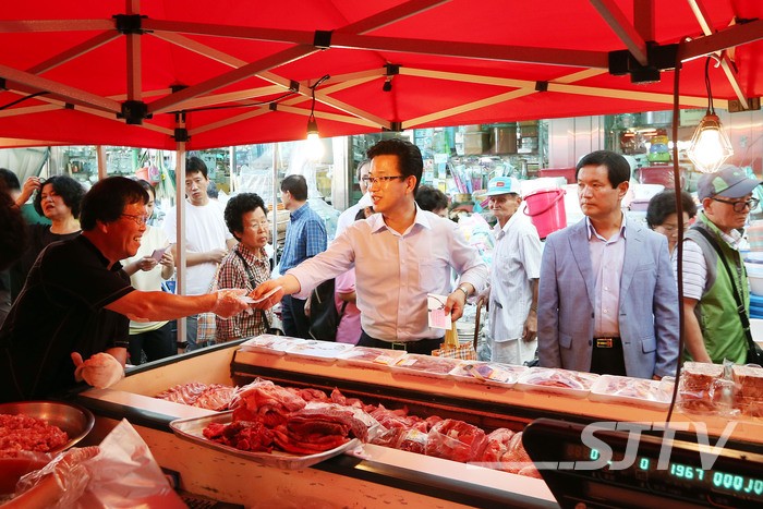 허태정 유성구청장, 추석 맞이 전통시장 장보기 행사