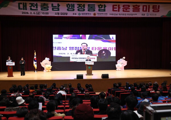 【SJB세종TV=황대혁 기자】 대전시는 6일 오전 10시 대전시청 3층 대강당에서 ‘대전․충남 행정통합 타운홀미팅’을 개최하고, 행정통합 특별법안을 둘러싼 주요 내용과 쟁점에 대해 시민들과 직접 소통하는 시간을 가졌다.