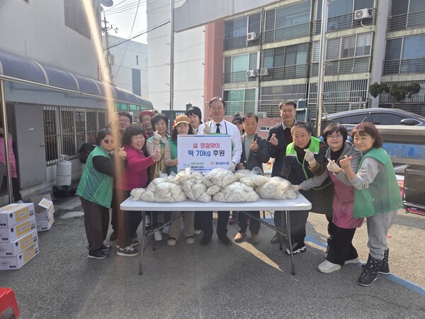 이번 기부는 지역 내 취약계층과 홀몸 어르신들을 위해 정기적으로 반찬을 만들어 전달하고 있는 봉명2송정동 새마을부녀회의 봉사활동을 응원하고, 따뜻한 나눔 문화를 확산하기 위해 마련됐다. 전달된 떡꾹떡 70kg은 반찬과 함께 지역 내 어려운 이웃들에게 전달될 예정이다.