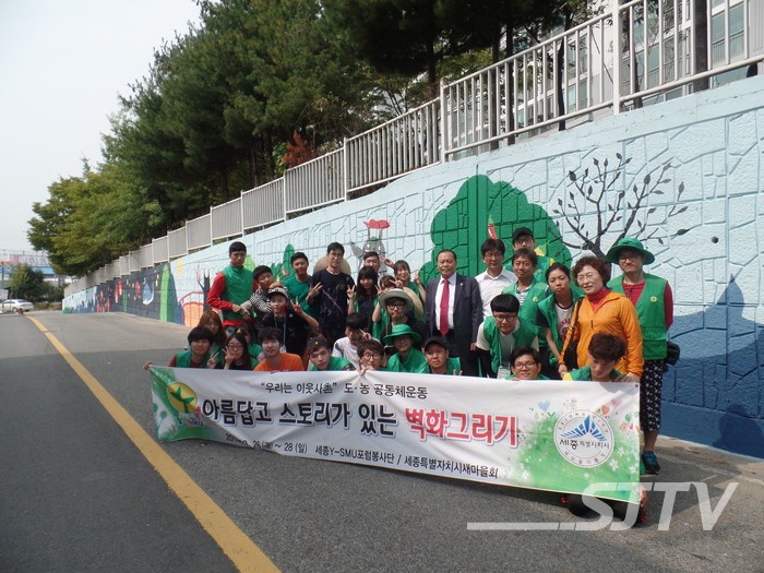 세종Y-SMU포럼 회원(홍대회장 박성철)는 지난 26일(금)부터 28일까지 2박3일간 회원 40여명이 참여한 가운데 금남면 용포5리 두진리버빌아파트 외벽에 벽화그리기 재능 봉사활동을 전개했다.