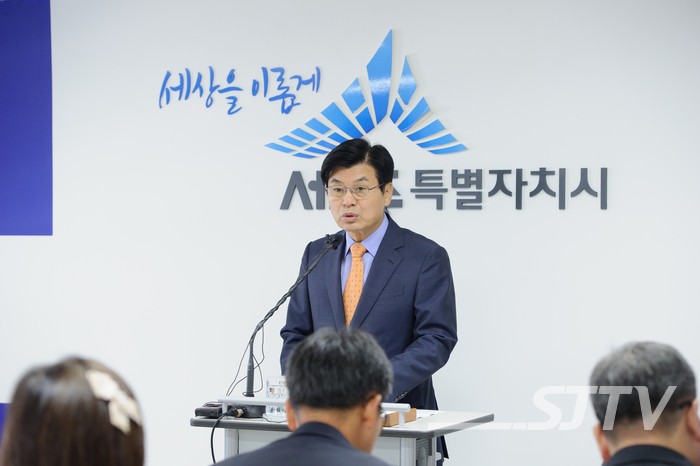 이춘희 세종시장이 23일 오전 시청 기자실에서 브리핑을 열고 학교 무상급식 고등학교까지 확대, 시민권익위원회 설치, 주택성능품질 실험시설 유치 등에 대해 발표했다.