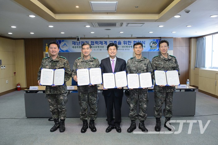 세종시는 27일 시청 회의실에서 세종시 소재 4개 군부대(제32사단, 제203특공여단, 제603항공대, 제605항공대)와 재난관리 상호 협력체계를 구축하기 위한 양해각서(MOU)를 체결하고 시민의 생명과 재산보호에 나선다.