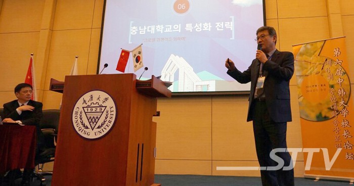 충남대 정상철 총장은 14일, 중국 중경대(重慶大, 총장:周緖紅)에서 열린 ‘제6차 한중대학총장포럼’에 참석해 충남대의 대학특성화사업(CK) 성공전략과 고등교육이 나아갈 방향에 대해 발표했다.