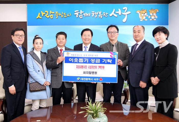 지난 14일, 서구 둔산동 써지탑 병원(병원장 변병남)은 서구청을 방문해 한밭복지센터 파랑새 봉사단의 무료급식시설 개선비 2백만 원을 전달했다.