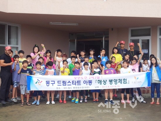 동구 드림스타트 센터에서 여름방학을 맞이하여 관내 저소득층 초등학생 4~6학년 40명을 대상으로 2박3일동안 대천해수욕장에서 병영체험 프로그램을 가졌다.