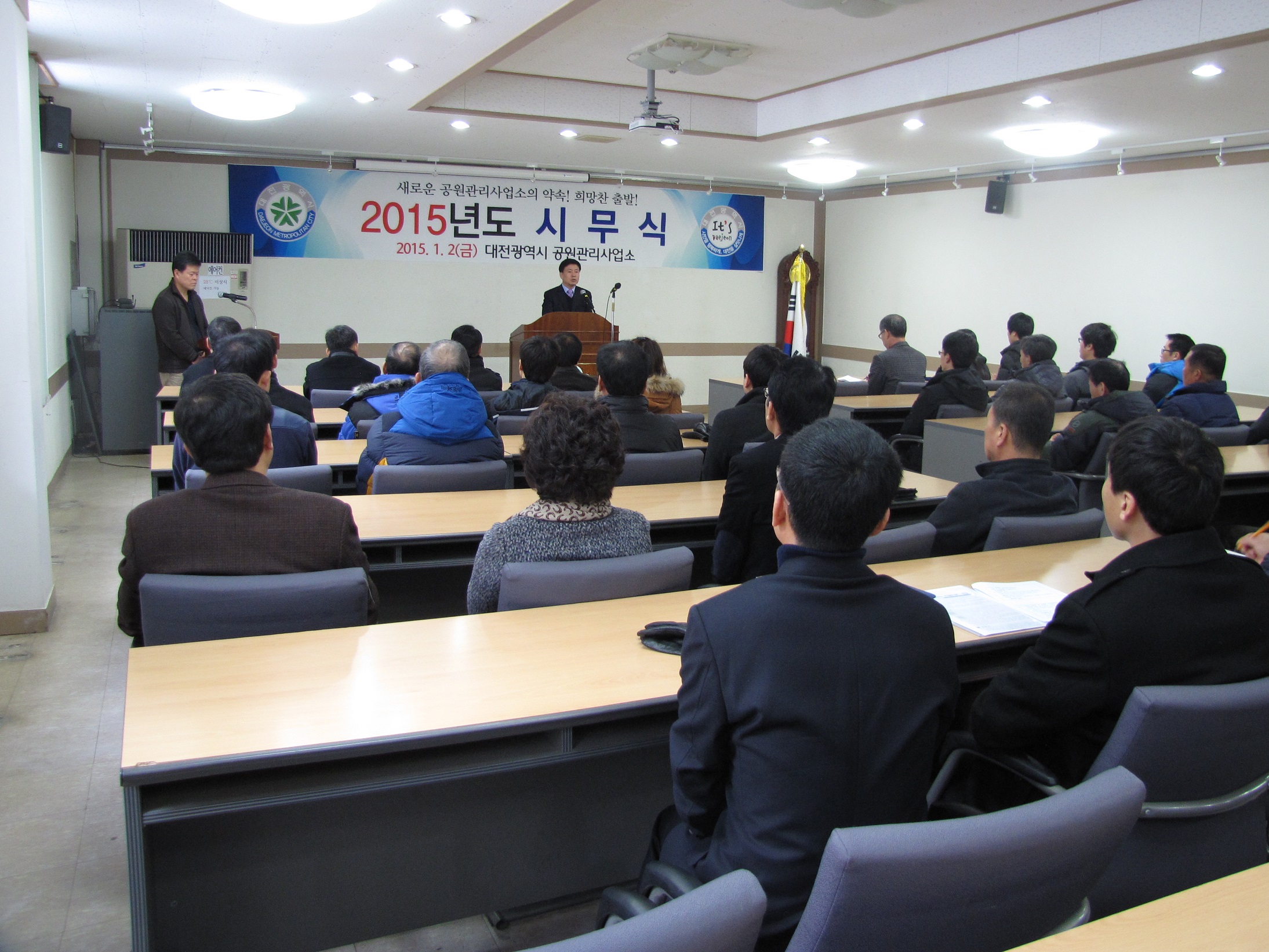 대전시공원관리사업소는 2일 만인산푸른학습원 대강당에서 사업소 직원, 고용 승계된 근로자 등 60여명이 참석한 가운데 시무식 및 다짐대회를 가졌다.