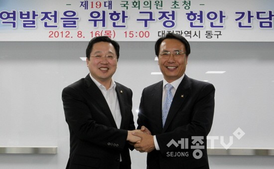동구는 16일 구청 소회의실에서 새누리당 이장우 국회의원을 초청하여 구정현안 간담회를 가졌다.