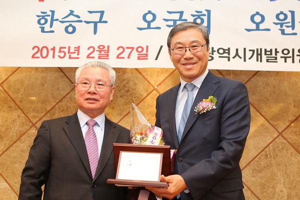 한승구 계룡건설 사장은 27일 유성아드리아호텔에서 열린 ‘제33회 대전개발대상’ 시상식에서 지역개발부문 대상을 수상했다.