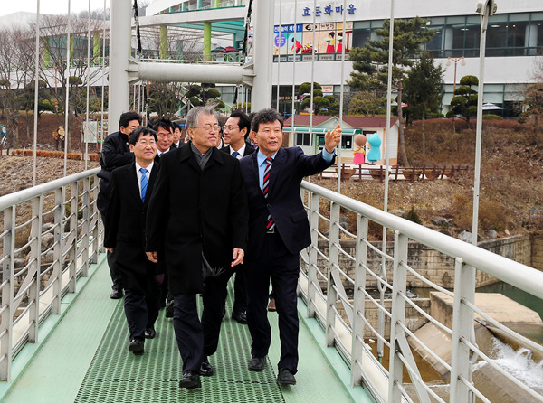 1997년 뿌리공원 개장 이래 정당 대표 최초로 문재인 새정치민주연합 대표가 지난 11일 효!월드를 방문해 박용갑 중구청장으로부터 현황 설명을 듣고 효 체험관 견학과 전국유일의 성씨조형물이 설치돼 있는 뿌리공원과 족보박물관을 둘러봤다.