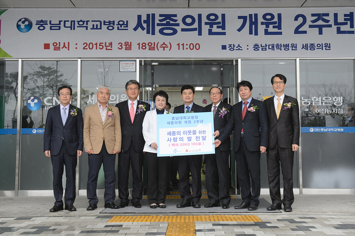 김봉옥 병원장은 “충남대학교병원 세종의원 개원 2주년을 매우 뜻 깊게 생각한다”며, “항상 어려운 이웃을 위해 나눔의 자세로 이웃사랑을 실천하겠다”고 말했다.