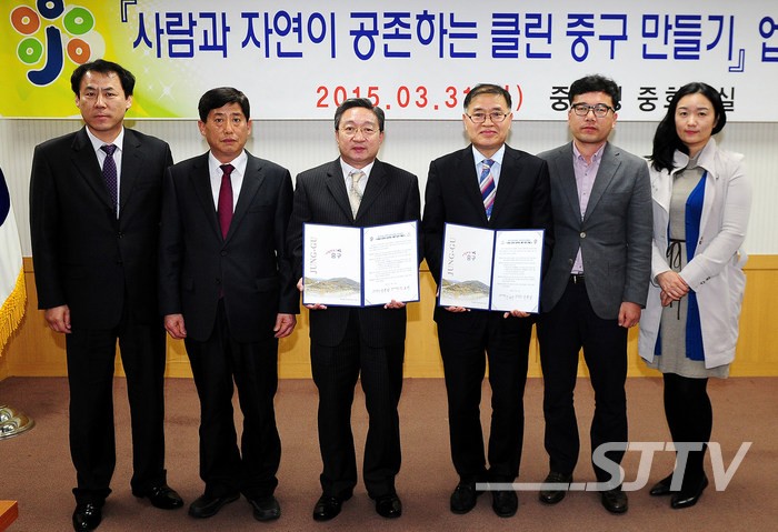 대전시 중구(구청장 박용갑)는 31일 법무부 대전보호관찰소(소장 강호성)와 청내 중회의실에서 ‘사람과 자연이 공존하는 클린 도시 만들기’라는 테마의 업무협약을 체결했다.