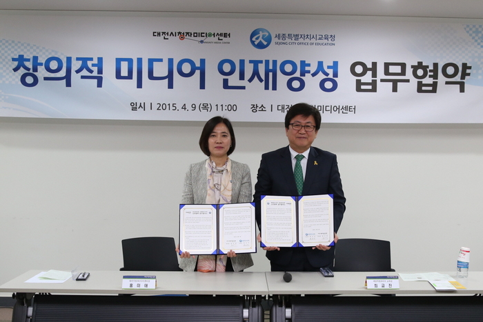 세종시교육청(교육감 최교진)이 9일 대전시청자미디어센터(센터장 홍미애)와 중학생들의 꿈과 끼를 찾자는 취지로 도입된 자유학기제의 활성화를 위한 업무협약을 체결했다.