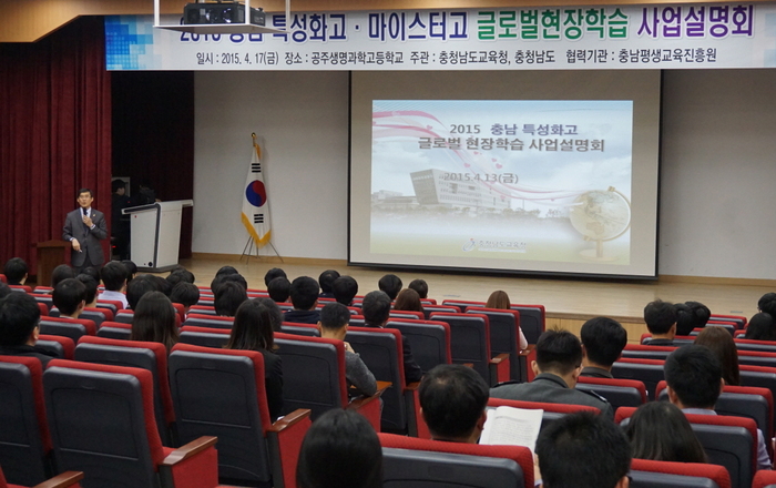 도교육청은 이 같은 성과를 이어가기 위해 17일 공주생명과학고등학교에서 2015년 충남 특성화고·마이스터고 글로벌 현장학습 운영에 대한 사전설명회를 열고 학생들과 학부모, 지도교사에게 사업내용을 설명했다.