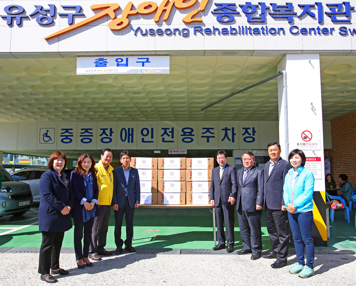 대전시 유성구의회(의장 노승연)는 17일 유성구 장애인종합복지관을 찾아 위문하고 봉사활동을 펼쳤다.