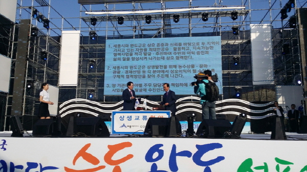 특히 세종시에서 역점사업으로 추진하고 있는 로컬푸드 직매장에 완도 특산물인 전복, 미역, 다시마 등 안전한 수산물 직거래장터를 개설하고 완도군은 세종시의 배, 복숭아 등 우수 농산물을 판매를 돕는 등 동반자 관계를 구축해 나가기로 했다.