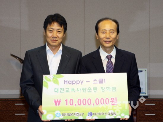 대전시교육청은 22일 유한킴벌리(대표 최규복)로부터 Happy 스쿨 장학금 1천만원을 기탁받았다.
