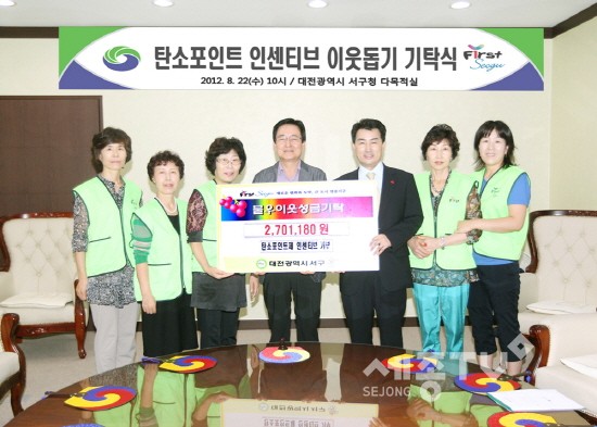 박환용 서구청장은 “탄소포인트제의 인센티브로 어려운 이웃을 돕는데 기부함으로써 온실가스도 줄이고 온정도 나누는데 기여하게 되어 기쁘다”며 앞으로 탄소포인트제에 구민들의 적극적인 참여를 당부했다.