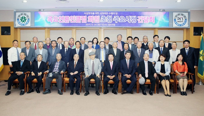 송화순 목요언론인클럽 회장은“매년 한차례씩 시정간담회를 개최 하다가 지난해에 세월호 때문에 중단되었지만 2년 만에 초청해 주신 것에 대해 감사드린다”며, “목요언론인클럽은 지난 35주년 창립총회가 있었다며, 중부권에서 언론계의 수장 역할을 하고 있는데 시와 함께 하는 클럽으로 거듭나기 위해 노력하겠다”말했다.