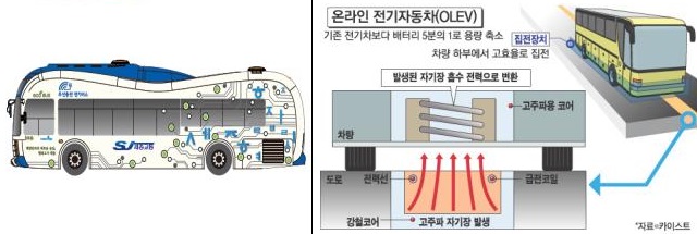 무선충전 전기버스(올레브)는 국토교통부 등 정부의 지원을 받아 한국과학기술원(KAIST)이 개발한 첨단 신교통수단으로 주행과 정차 중에 무선으로 전력을 공급받아 운행할 수 있는 전기버스로 지난 2013년 자동차 안전인증 및 충전 시 전자파 안전인증 등을 완료했다.