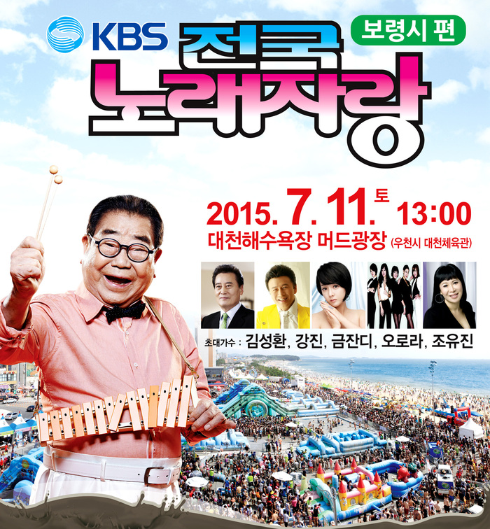 KBS 전국노래자랑 보령시편 녹화는 7월 11일 오후 1시부터 대천해수욕장 머드광장에서 진행될 예정이다.